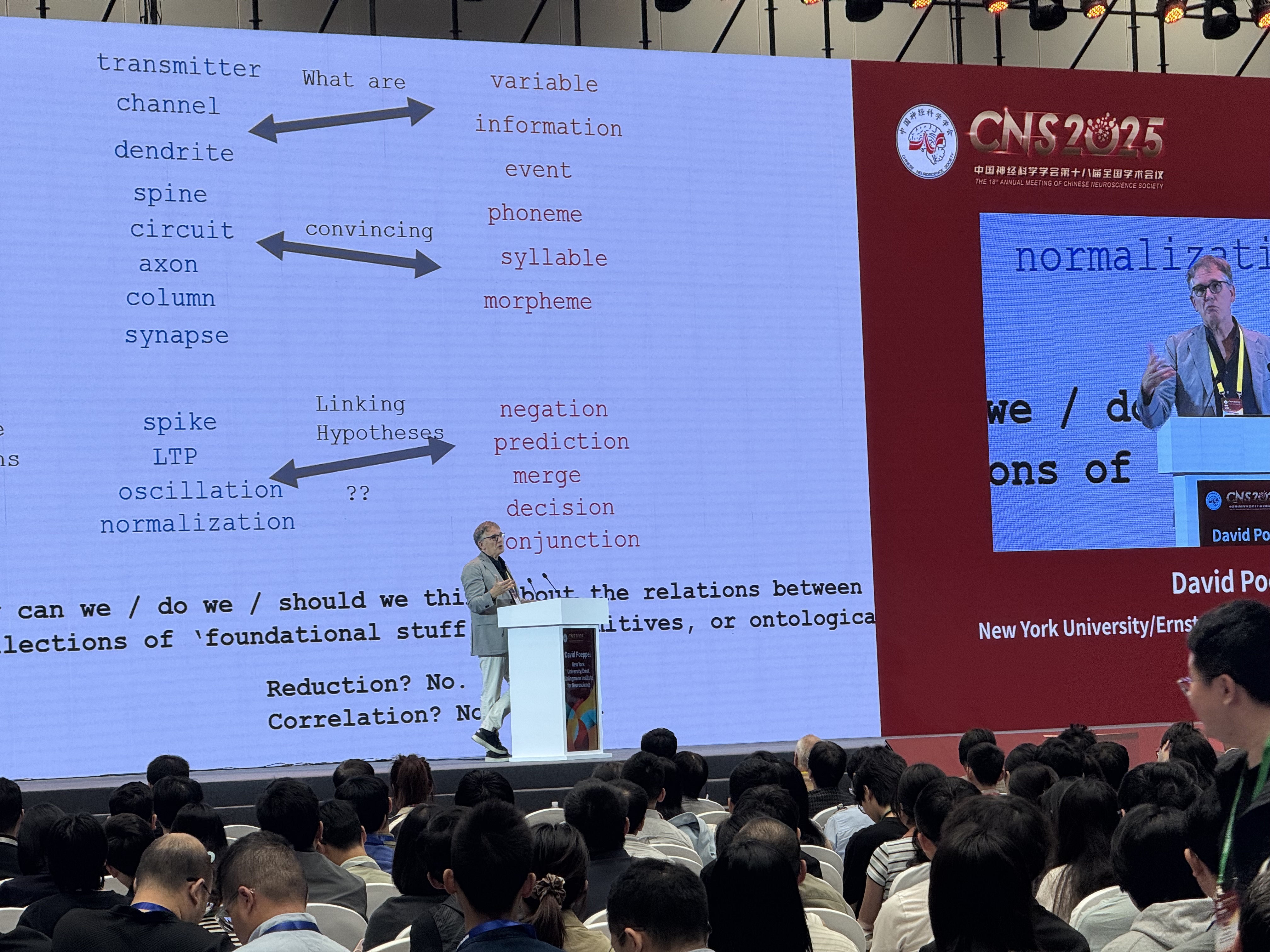 David Poeppel gives the IBRO plenary lecture at the Annual Meeting of the Chinese Neuroscience Society 2025 in Xi’an, China on September 26th, 2025. From vibrations in the ear to abstractions in the brain.